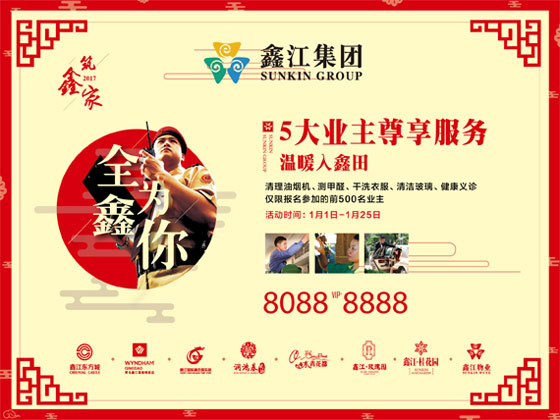 From 1st Jan to 25th Jan, householders of Chateau Lafite, Woody Riverside and Garden River will obtain privilege card by subscribing Sunkin group on Wechat public platform and reposting event related articles. The privilege card involves five benefits: health check service, kitchen ventilator cleaning service, formaldehyde testing service, laundry service as well as window cleaning service, card holders can choose one from these five benefits,