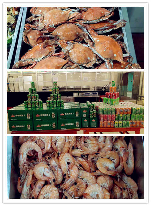 公司領導特意安排包括螃蟹、大蝦、餃子、各種飲料等在內的豐盛的午餐晚餐,增強了大家對企業的認同感、歸屬感。