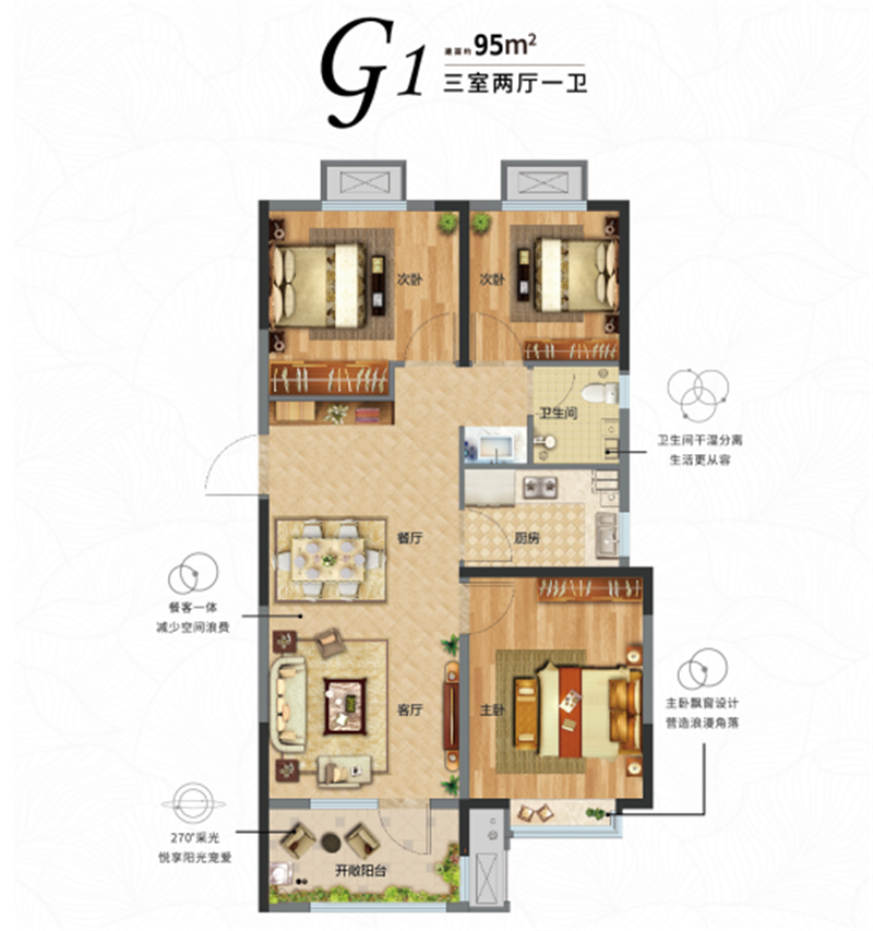住在全明戶型設計和高附加的飄窗空間中,豐沛陽光洋洋灑灑的落進來,落在枕頭上,落在餐桌上、落在綠植上,每個角落仿佛都在閃閃發亮,寬敞的南向瞰景陽臺更是將日光的時間拉長,在這里,我們可以根據影子的長短,感知時間的變換,有時候不用抬頭看鐘表,也知道改去做什么事情了。