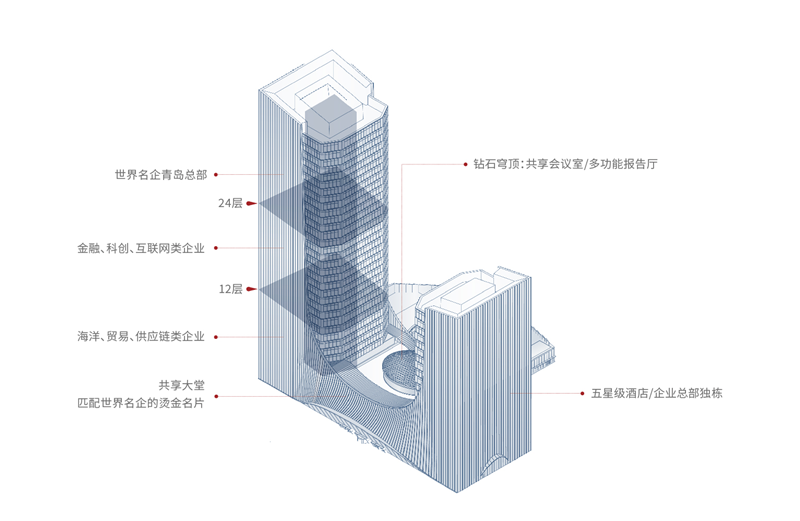 約2500㎡青島在建最大最高共享大堂,約18.8m高挑空,約58.8m無柱大跨度