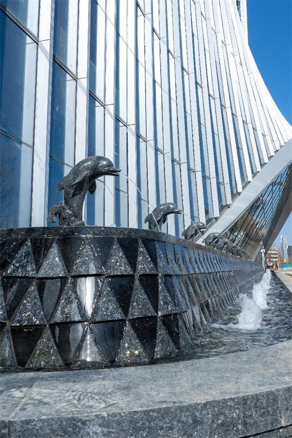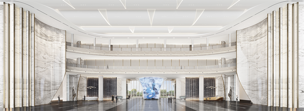 期間,領(lǐng)導(dǎo)們詳細(xì)咨詢了鑫江中心的雙曲玻璃幕墻、7mm超薄石材和雙曲面天然大理石等工藝、材質(zhì)。單塊曲面玻璃的誕生,至少需要20天+的生產(chǎn)周期。必須在特殊熱彎工藝下,經(jīng)過550-650oC加熱軟化、特定模具重力變形、自然冷卻退火等核心工序后方才成型。鑫江中心打造的約2500㎡青島在建最大最高共享大堂(約18.8m高挑空,約58.8m的無柱大跨度)以非凡尺度開拓青島巔峰商務(wù)新封面。大堂中央水景處7m高南斯拉夫白雙曲面天然大理石打造60㎡超大曲面LED展示屏,在整個(gè)市場也是難得一見。其安裝工藝更是遠(yuǎn)非正常人力所能及,必須經(jīng)由專業(yè)技術(shù)工人輔以特殊的機(jī)械裝置完成。