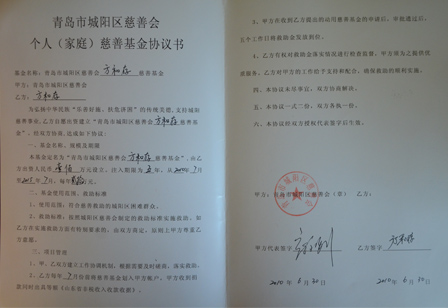 2010年慈善基金協議書封面